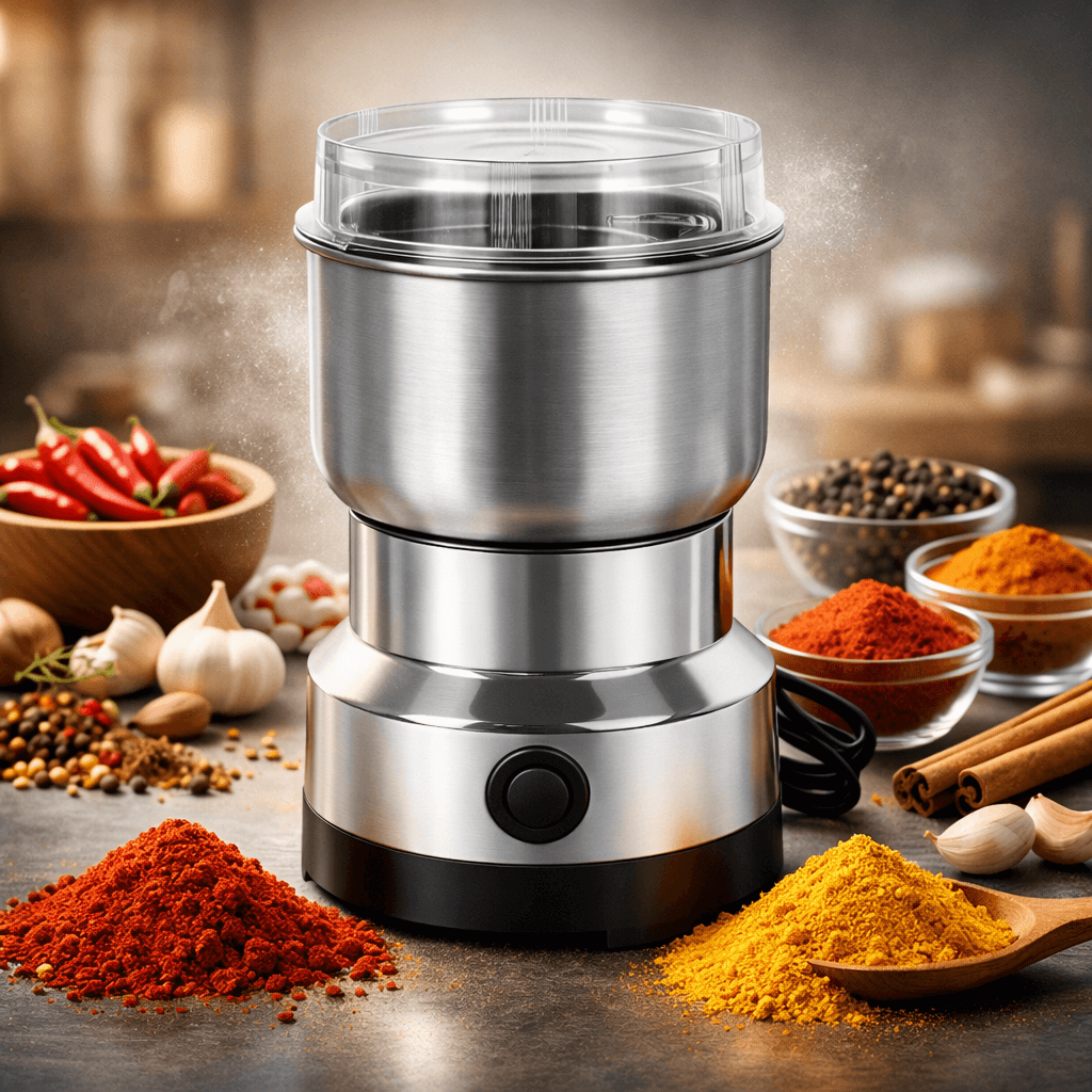 Convient pour moudre grains et ingrédients secs (ex : café en grains / graines / herbes sèches), avec une finesse réglable selon la durée.
